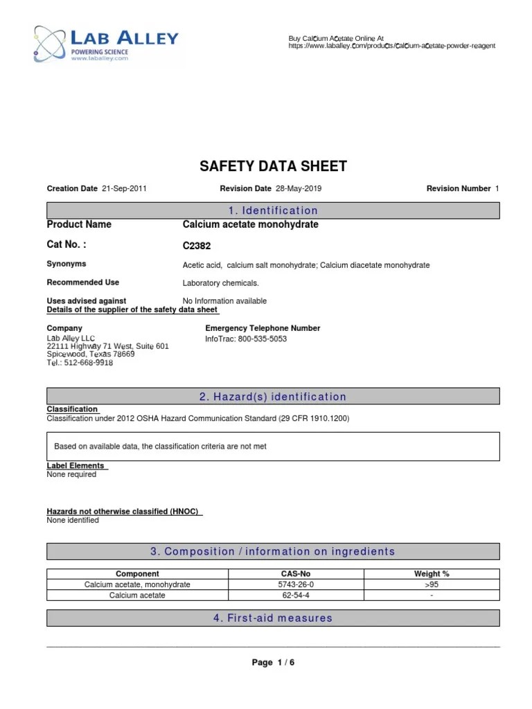 Ammonium Acetate Safety Data Sheet - Identification of the substance/mixture and of the. Version 6.6 revision date 05/24/2023 print date 01/06/2024.