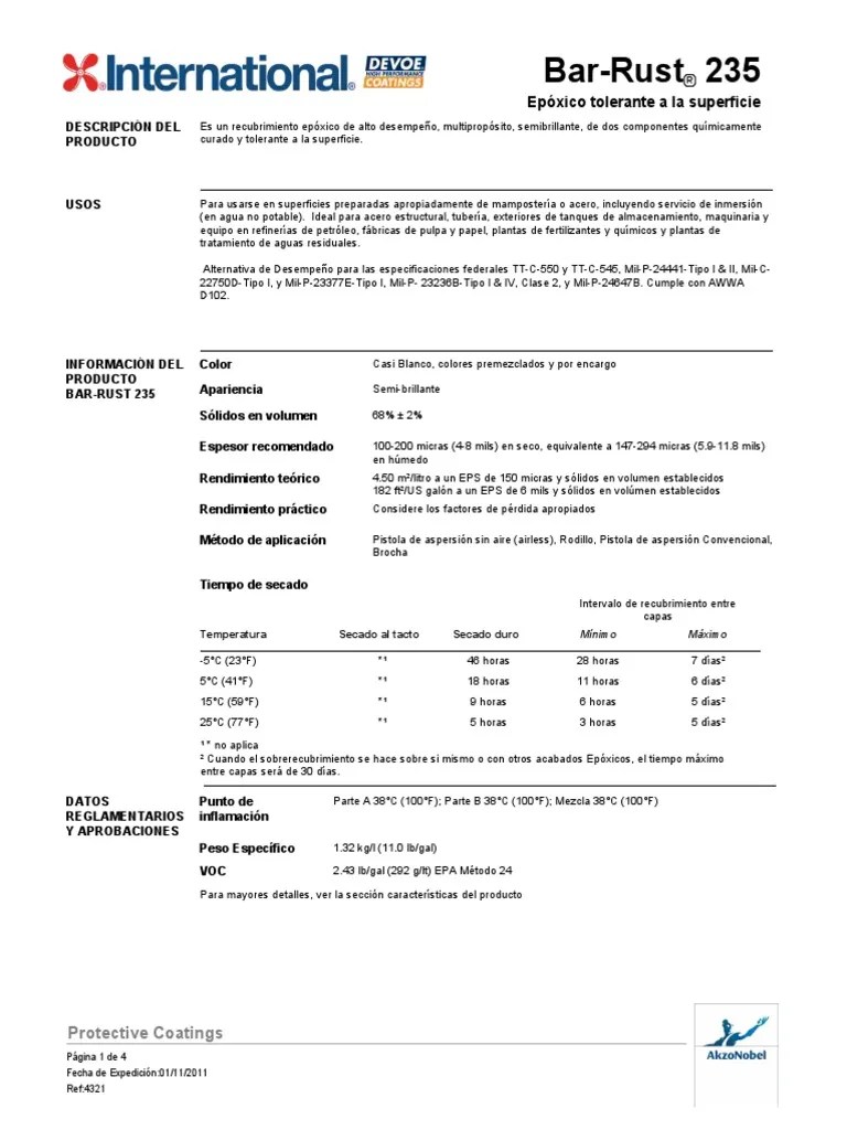 Bar Rust 235 Data Sheet - Intended uses for use on properly. Intended uses for use on properly prepared steel or masonry. Advanced technology epoxy general description: Characteristics product chemistry surface tolerant epoxy volume solids 68 voc.