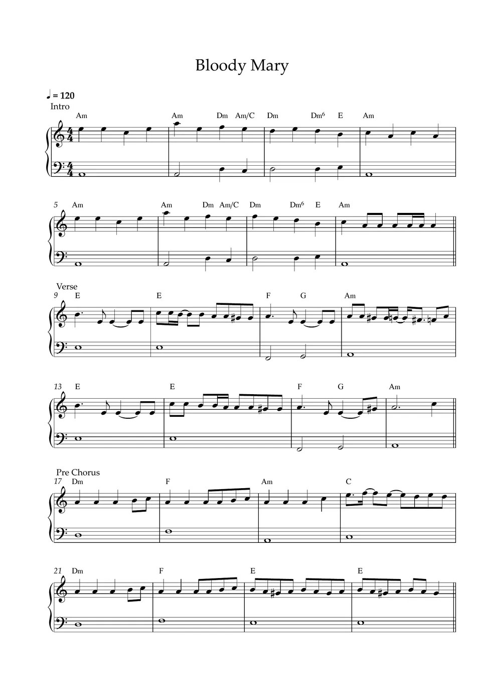 Bloody Mary Sheet Music Piano - Web bloody mary composition by lady gaga sheet music main info scores 49 filters difficulty level available only for piano.