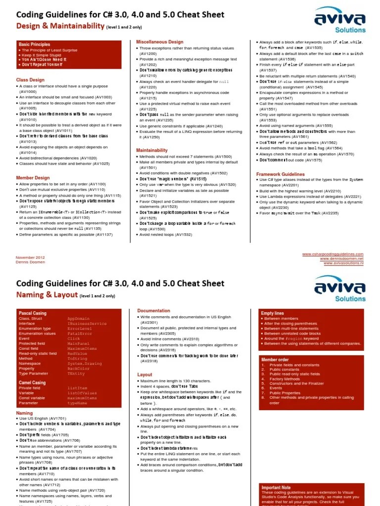 Csharp Cheat Sheet - It is a quick and easy way to. Web 13 contributors feedback in this article in this section related sections this section provides reference material. This cheat sheet is a valuable resource for anyone who wants to learn c#.