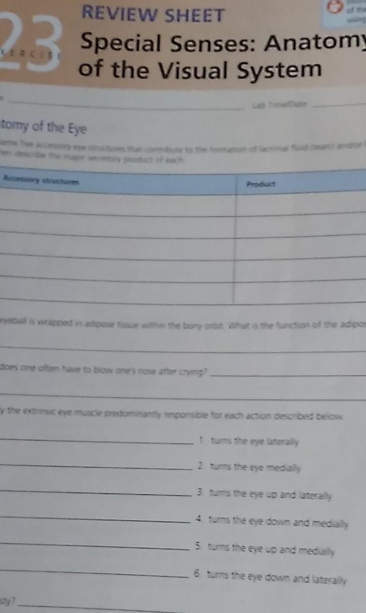 Exercise 18 Review Sheet Special Senses - Special senses cochlea click the card to flip 👆 structure that contains the spiral organ. Review sheet 17 221 18. In the experiment on the convergence reflex,. Web the special senses the eye and vision: