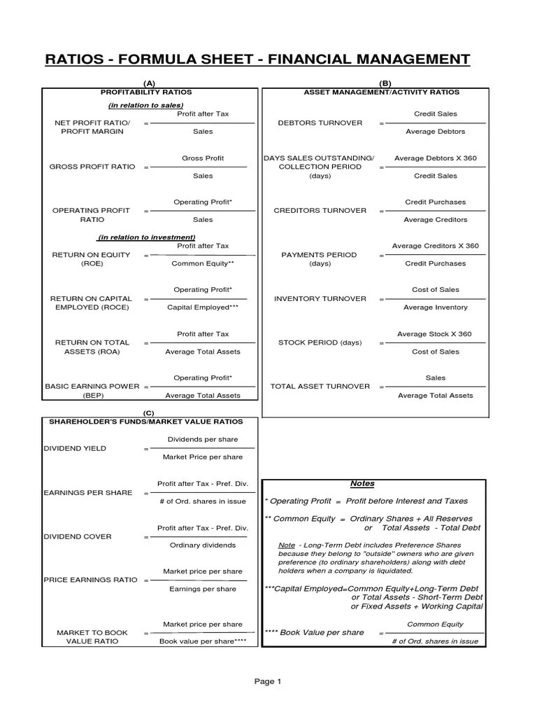 Formula Sheet For Finance - The objective is to assess: Summary of financial ratio calculations. This note contains a summary of the more common financial statement.