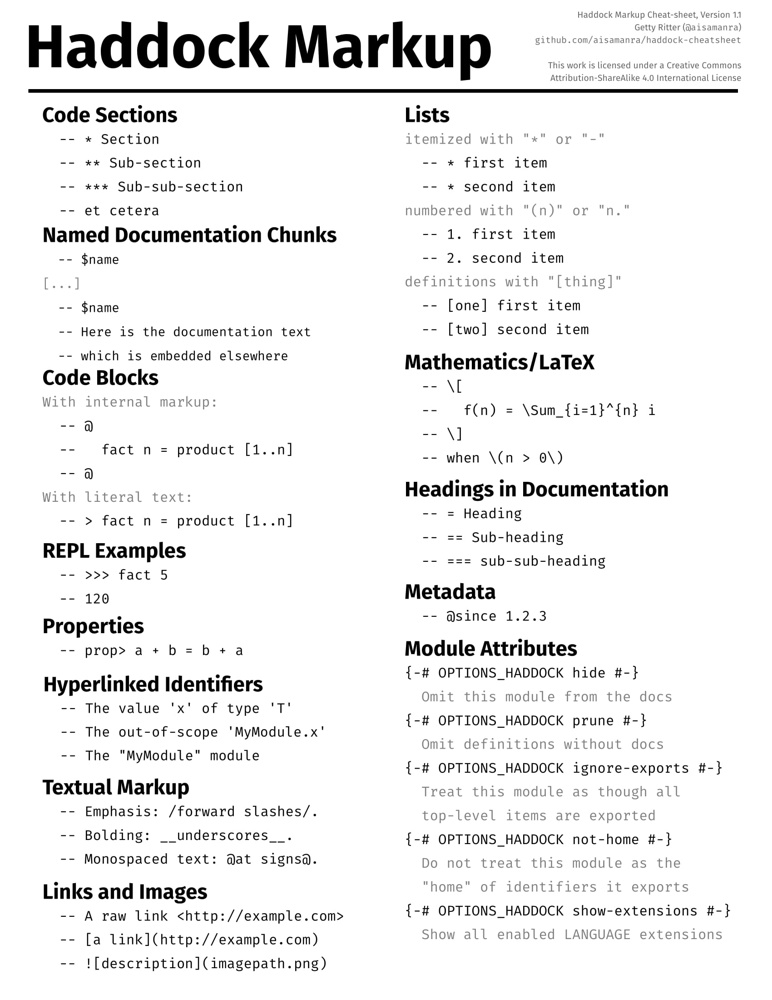 Web learn haskell syntax, keywords and other language elements with this cheatsheet for beginning to intermediate programmers.