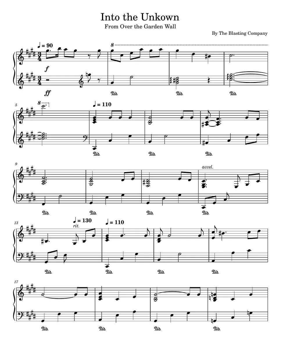 Into The Unknown Sheet Music Over The Garden Wall - A very mystical but enchanting song. Web © 2023 google llc embark on a whimsical journey with 'into the unknown' from 'over the garden wall' beautifully. Web download and print in pdf or midi free sheet music for into the unknown by the blasting company arranged by. Web this is “into the unknown”, the opening song for the animated series over the garden wall.