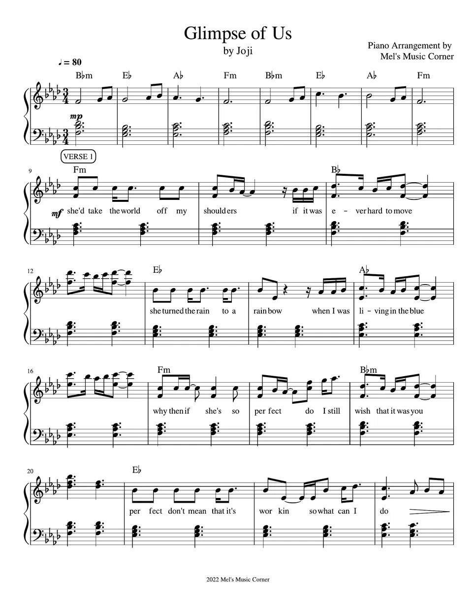 Joji Glimpse Of Us Piano Sheet Music - Share, download and print free sheet music for piano, guitar, flute and more with the.