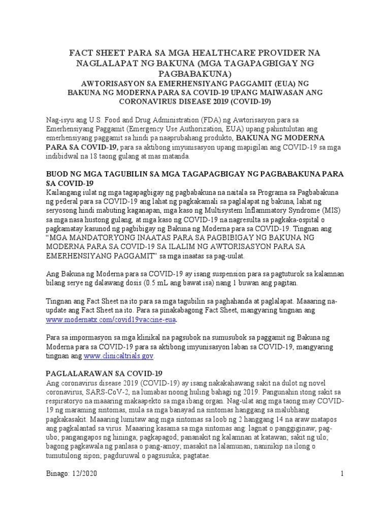 Moderna Eua Fact Sheet For Providers - Web fact sheet for healthcare providers administering vaccine (vaccination providers) emergency use authorization. Web fact sheet for healthcare providers administering vaccine (vaccination providers) emergency use. Web 1 fact sheet for healthcare providers administering vaccine: Web fact sheet for healthcare providers administering vaccine: