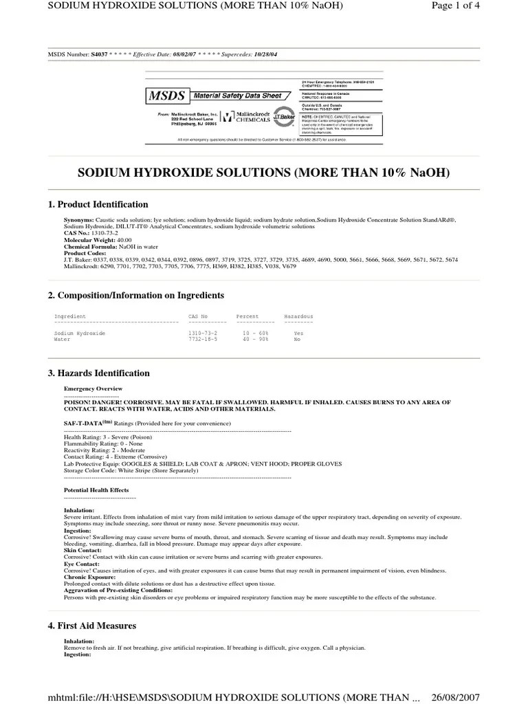 Sodium Hydroxide Msds Sheet - Sodium hydroxide product number : Web safety data sheet according to us regulation 29 cfr 1910.1200 (hazcom 2012) 1. Stability and reactivity reactive hazard yes stability.