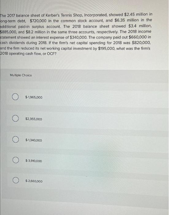 The 2017 Balance Sheet Of Kerber's Tennis Shop - Web accounting questions and answers. The 2017 balance sheet of kerber’s tennis shop, inc., showed $650,000 in the common.