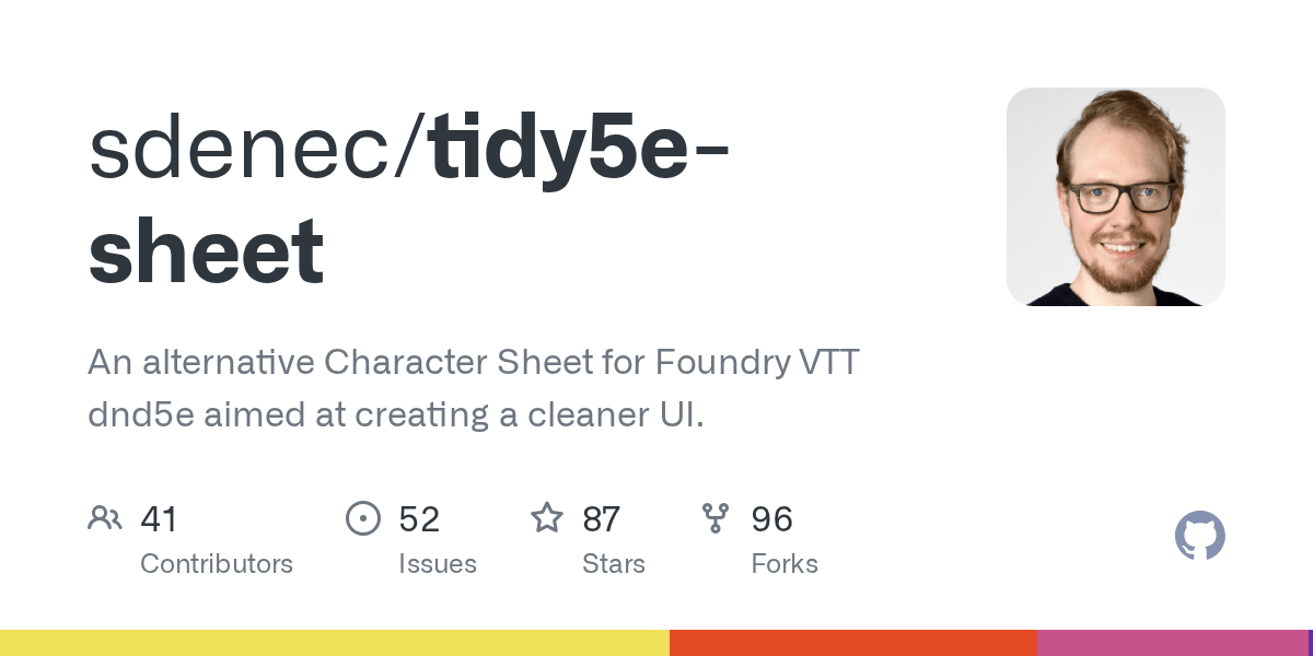 Tidy5E Sheet Foundry - Web d&d 5e sheet layouts for foundry vtt, focused on a clean ui, user ergonomics, and extensibility.