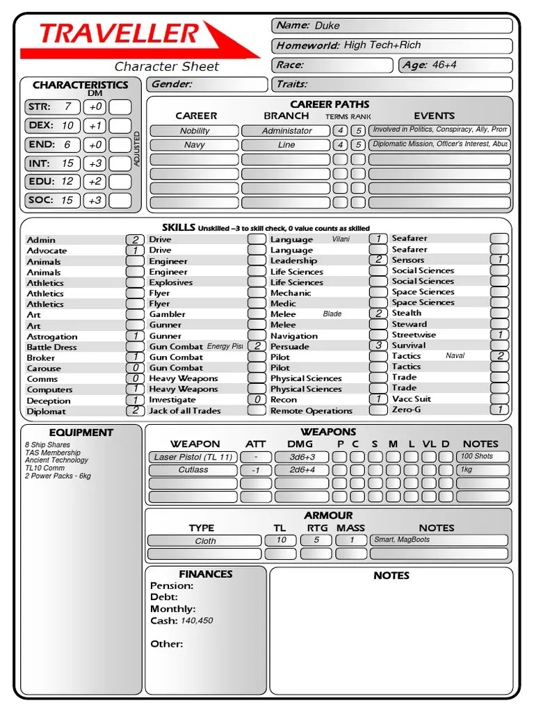 Traveller Character Sheet - Web a user on reddit shares a form fillable character sheet for traveller 2022, a free and updated version of the rules and. There is at present only an.
