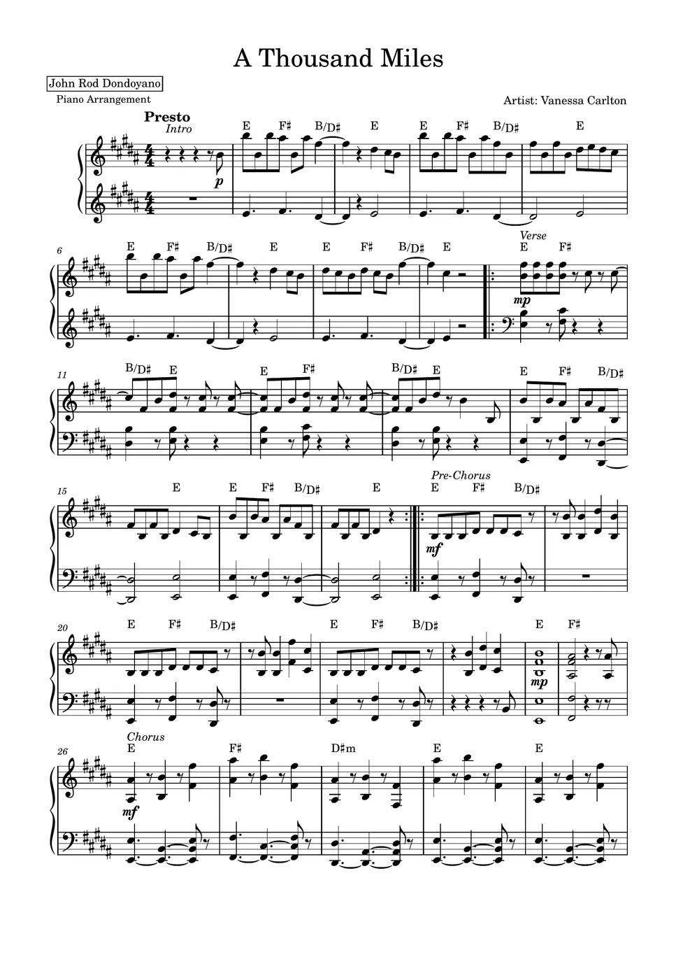 Web free a thousand miles by vanessa carlton sheet music | download pdf or print on musescore.com off 02: Web a thousand miles sheet music vanessa carlton and 11 more browse our 34 arrangements of a thousand miles..